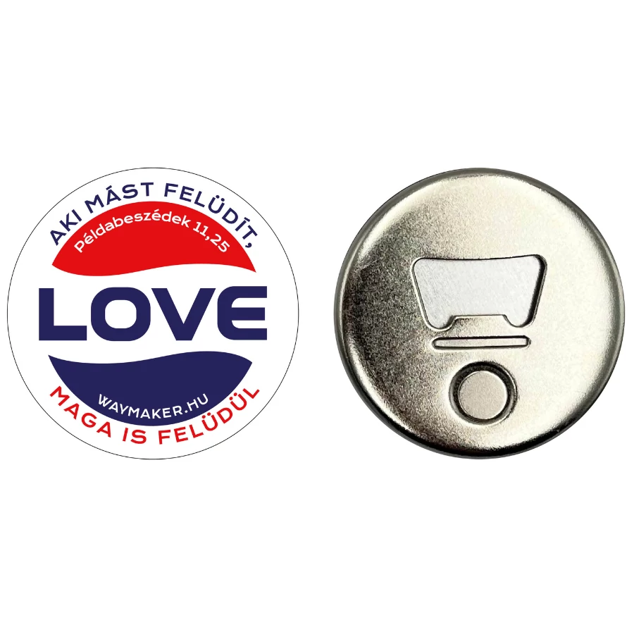 Kör alakú hűtőmágnes üvegnyitóval.