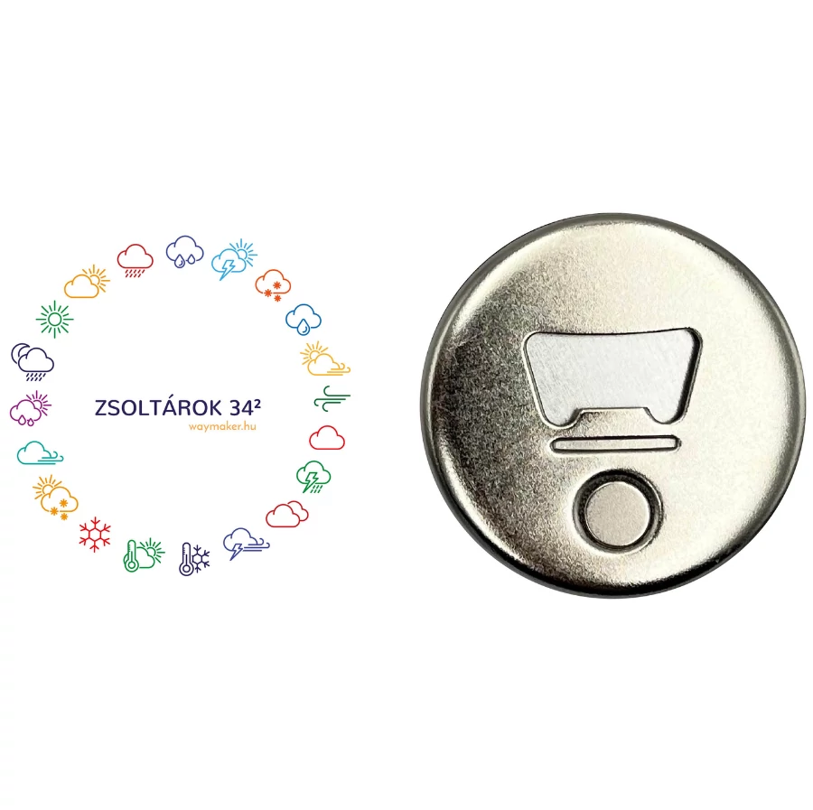 Kör alakú hűtőmágnes üvegnyitóval.
