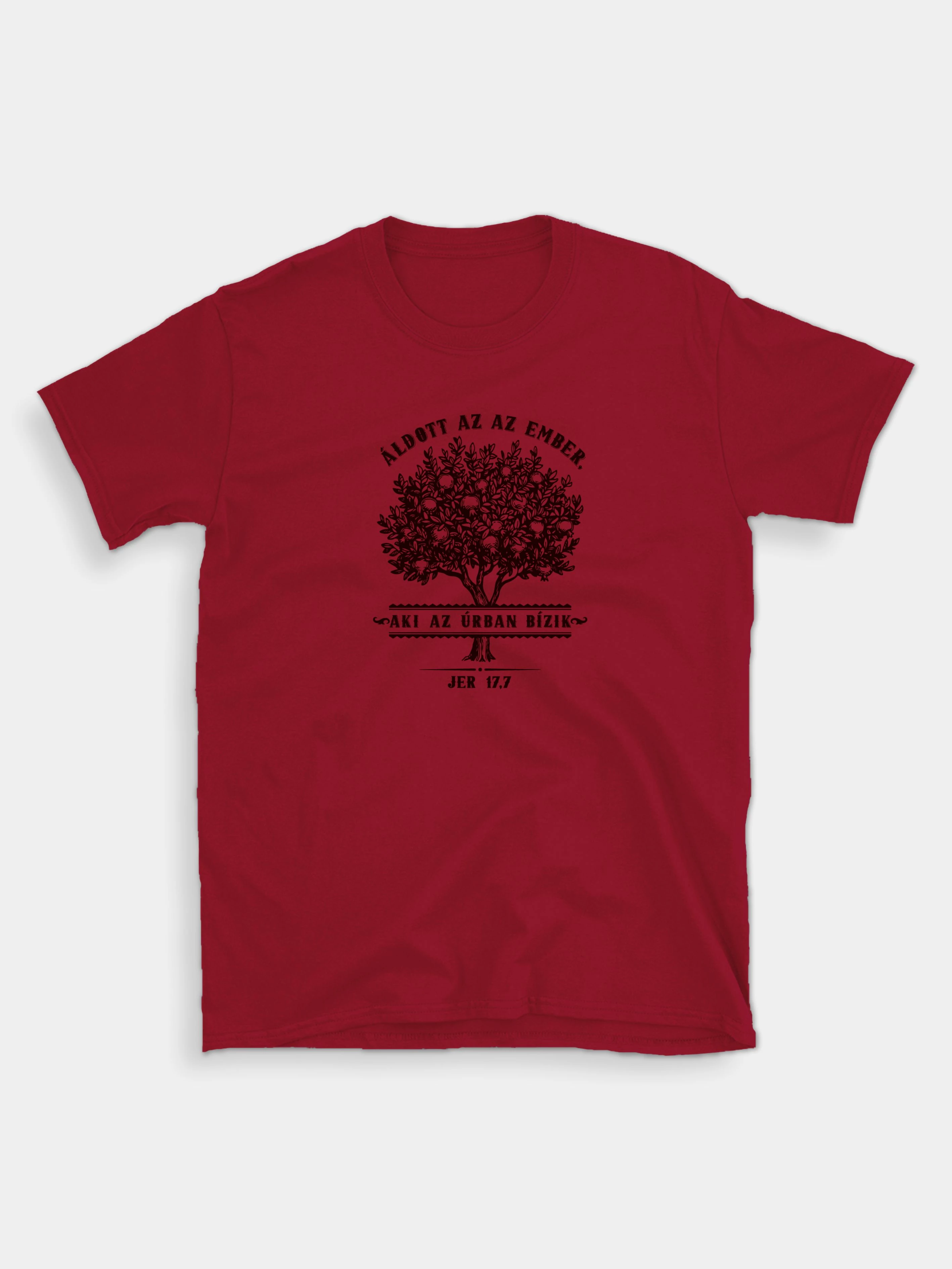 Uniszex póló, magyar felirattal, egy gránátalmafa mintájával.