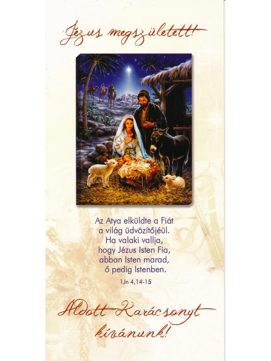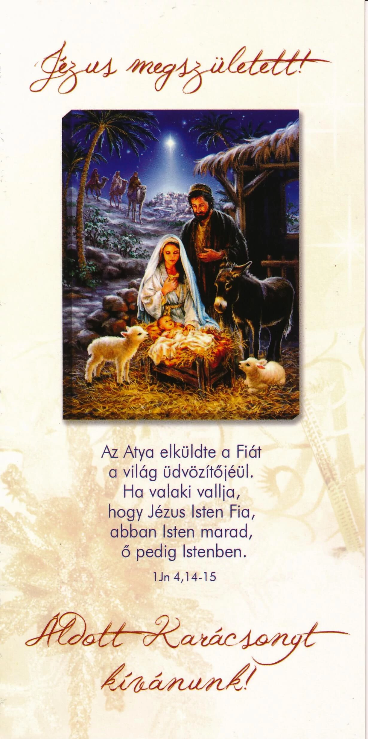 Belső oldalon szereplő Ige: „Íme, a szűz fogan méhében, fiút szül, akit Immánuelnek neveznek” – ami azt jelenti: Velünk az Isten. Máté 1,23