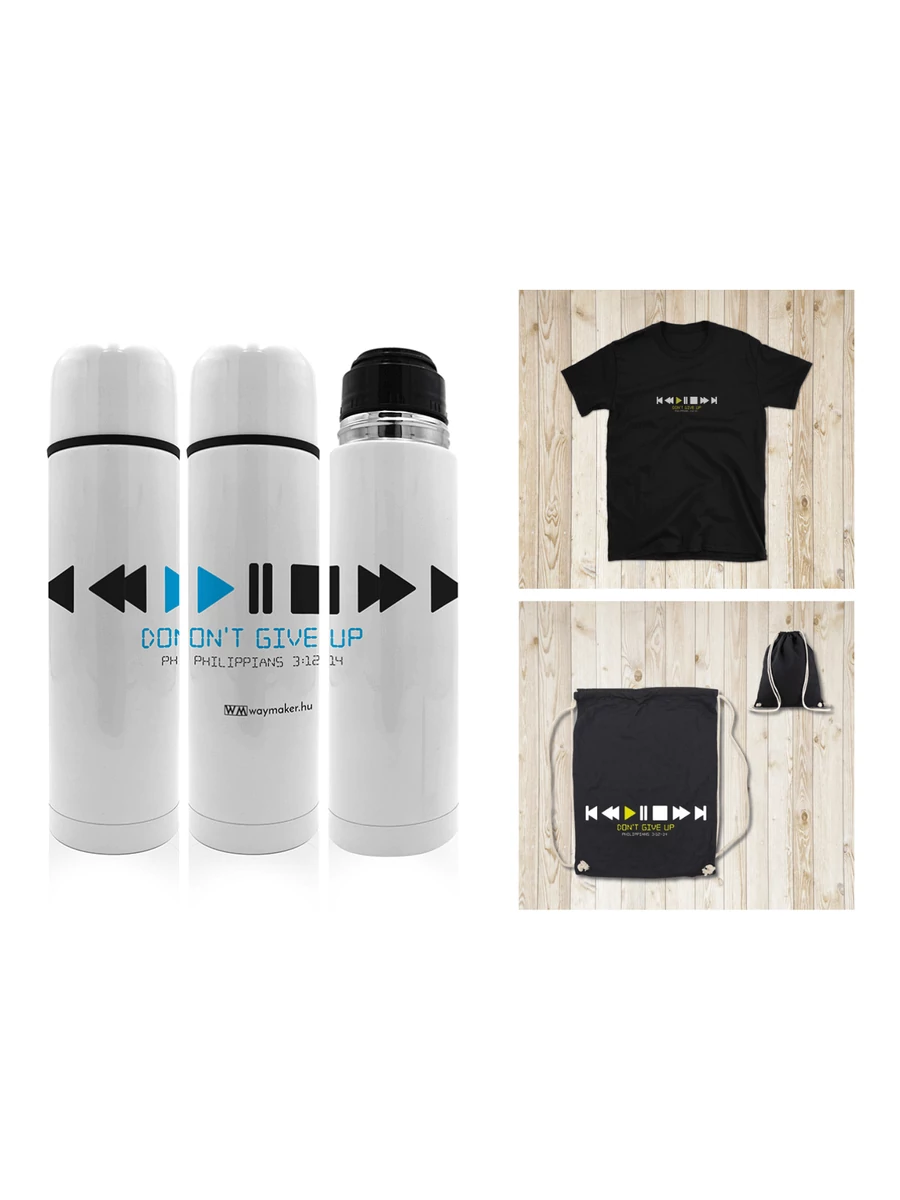 - 1 db „Don’t give up” – Uniszex póló – fekete (kérjük, megjegyzésben add meg a méretet (XS, S, M, L, XL, XXL, XXXL)!