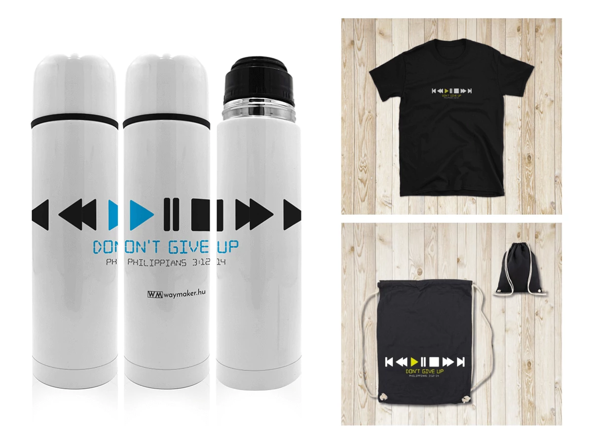 Felirat: „Don’t give up. Philippians 3:12-14”.