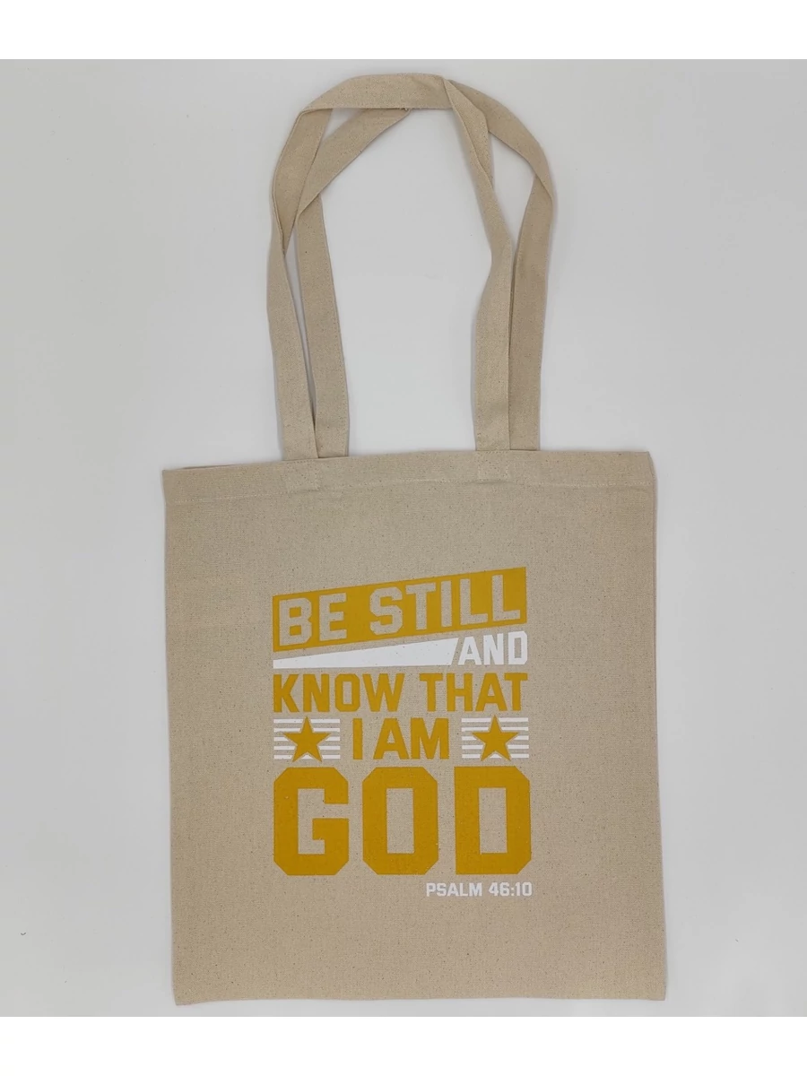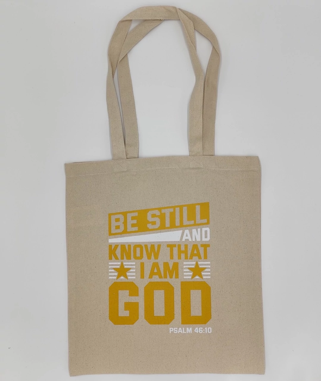 Felirat: „Be still and know that I am God. Psalm 46:10”.