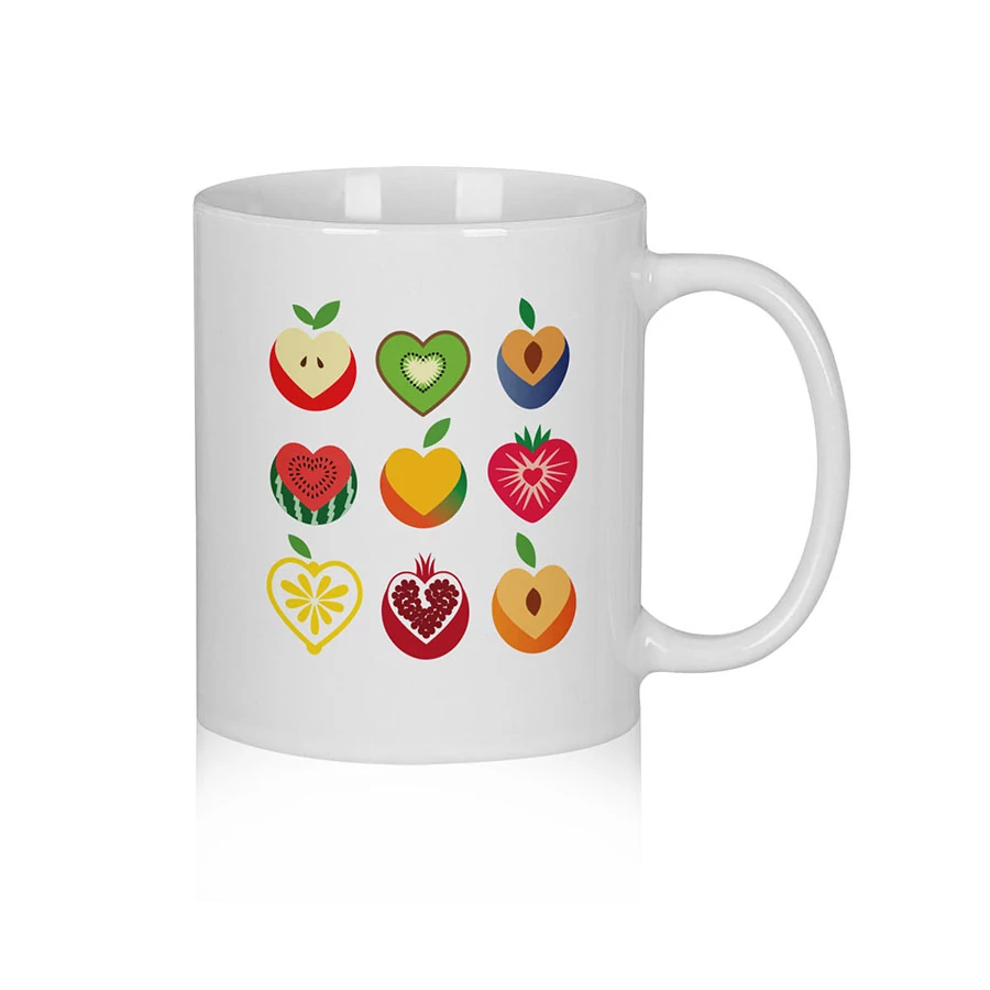E bögre színes, vidám ábrái arra emlékeztetnek, hogy milyen gyümölcsöket is kell teremnie az életünknek.