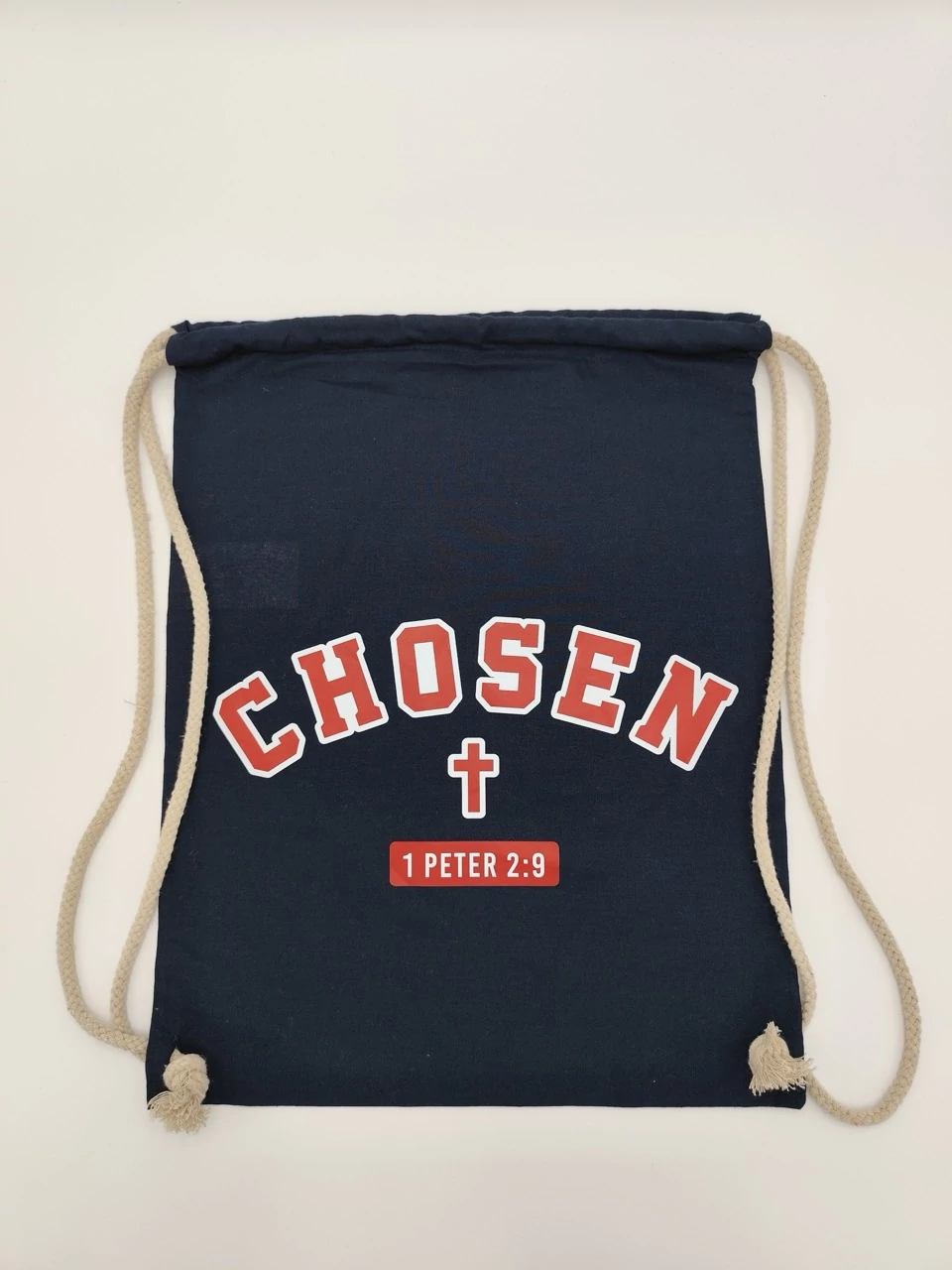 Felirat: „Chosen”. Piros-fehér keresztmintával.