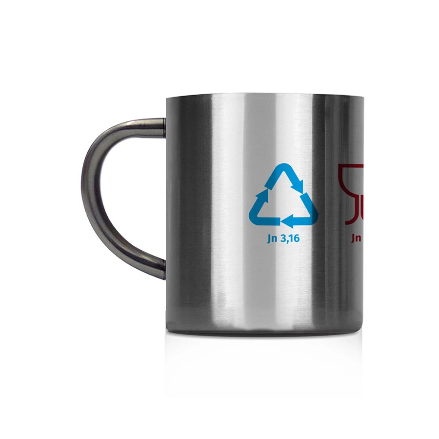 Rozsdamentes acélból készült bögre, 320 ml. Dobozban szállítjuk.