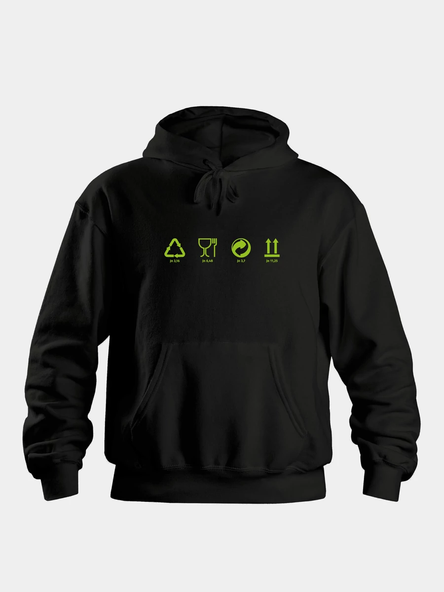 Kapucnis pulóver kenguruzsebbel, csomagolásikon-mintával, mindegyikhez 1-1 igehellyel.