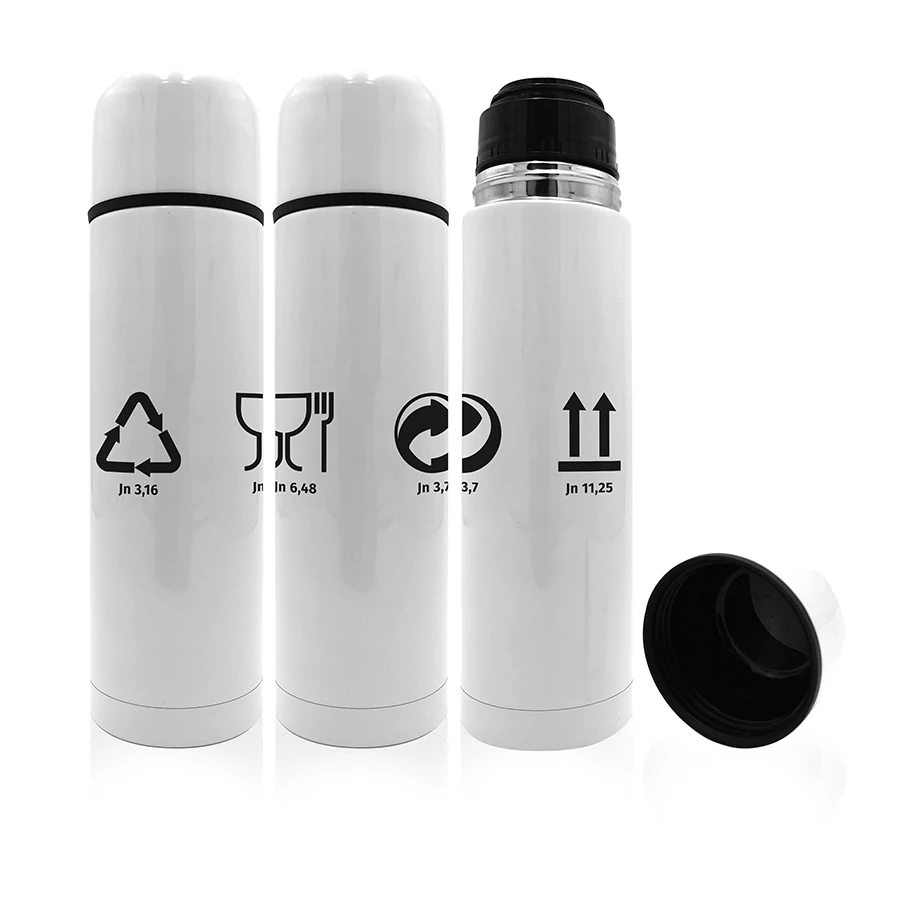 1 db rozsdamentes acél termosz, csomagolásikon-mintával, mindegyikhez 1-1 igehellyel.