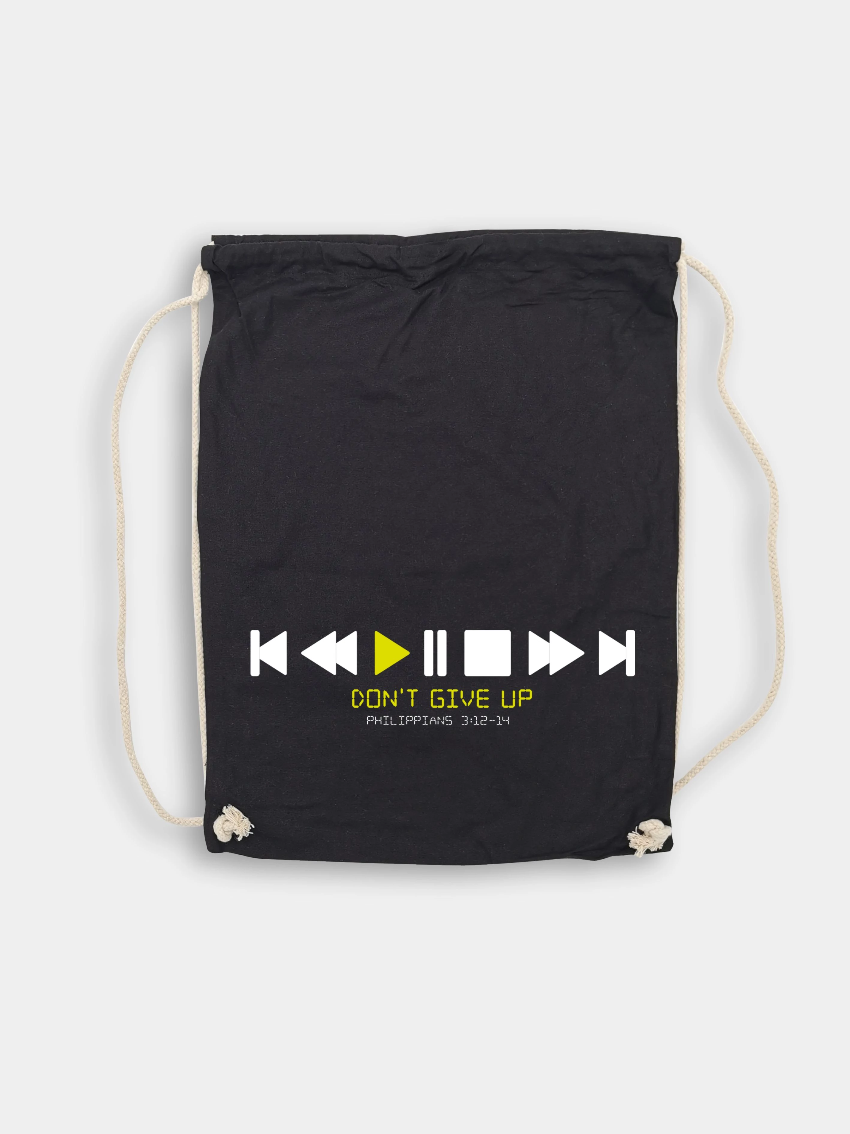 Felirat: „Don’t give up. Philippians 3:12-14”.