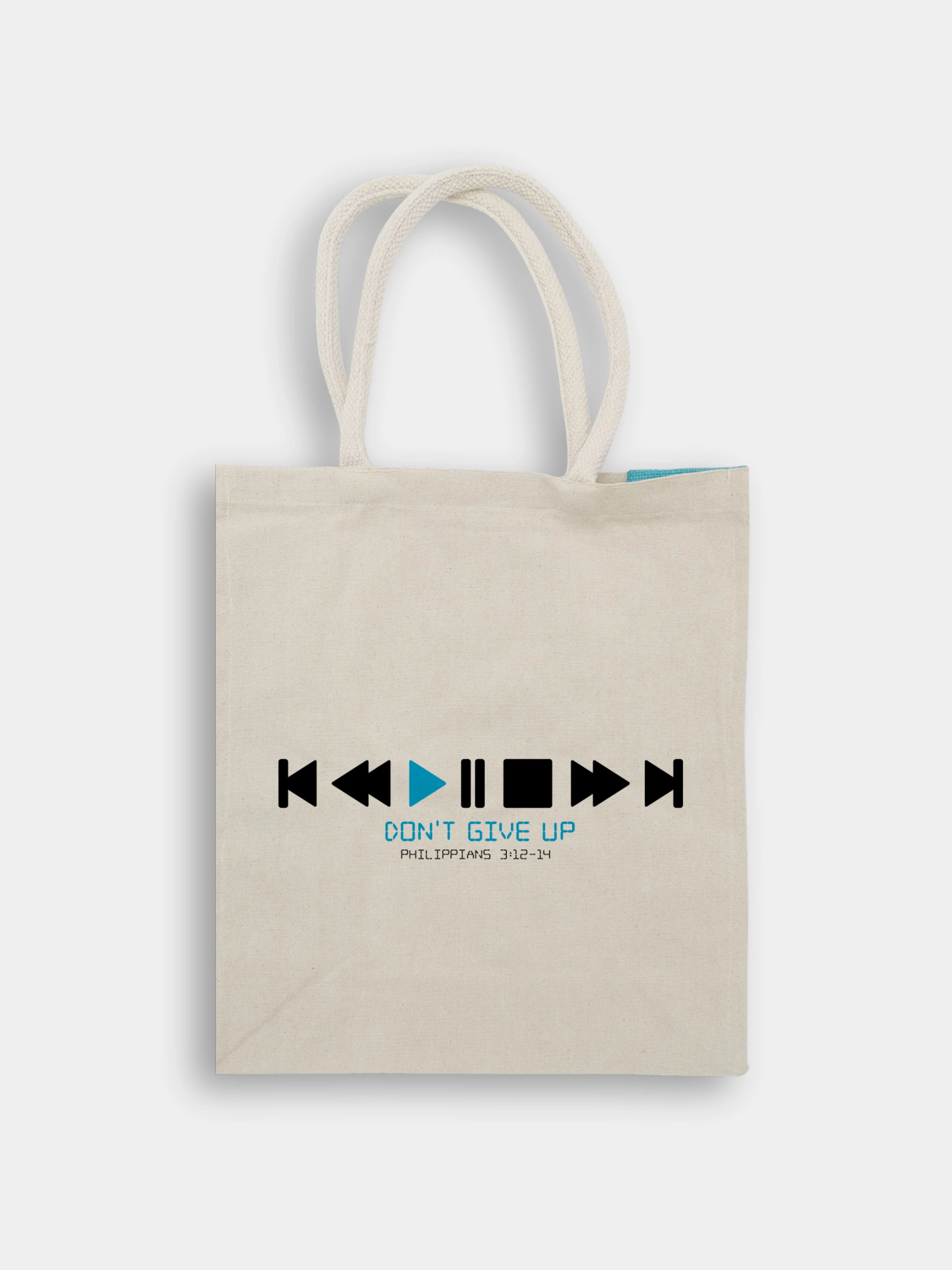 Felirat: „Don’t give up. Philippians 3:12-14”.