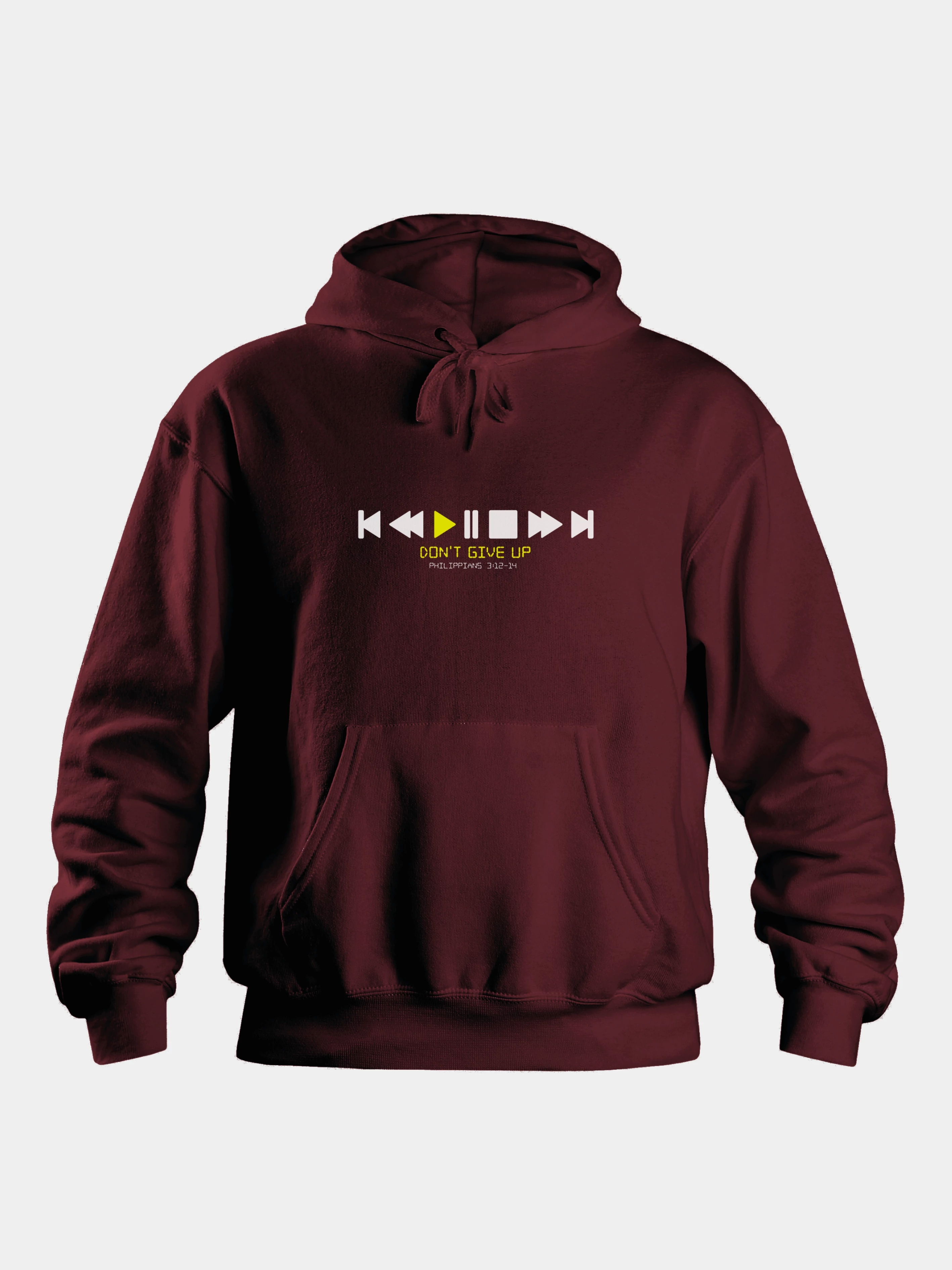 Felirat: „Don’t give up. Philippians 3:12-14”.