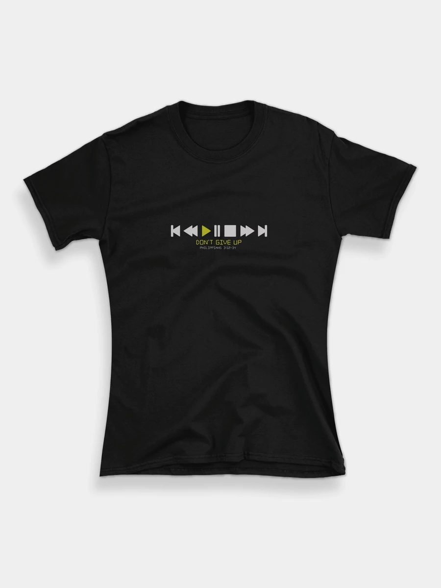 Női póló, angol felirattal, mp3-kijelzőmintával.