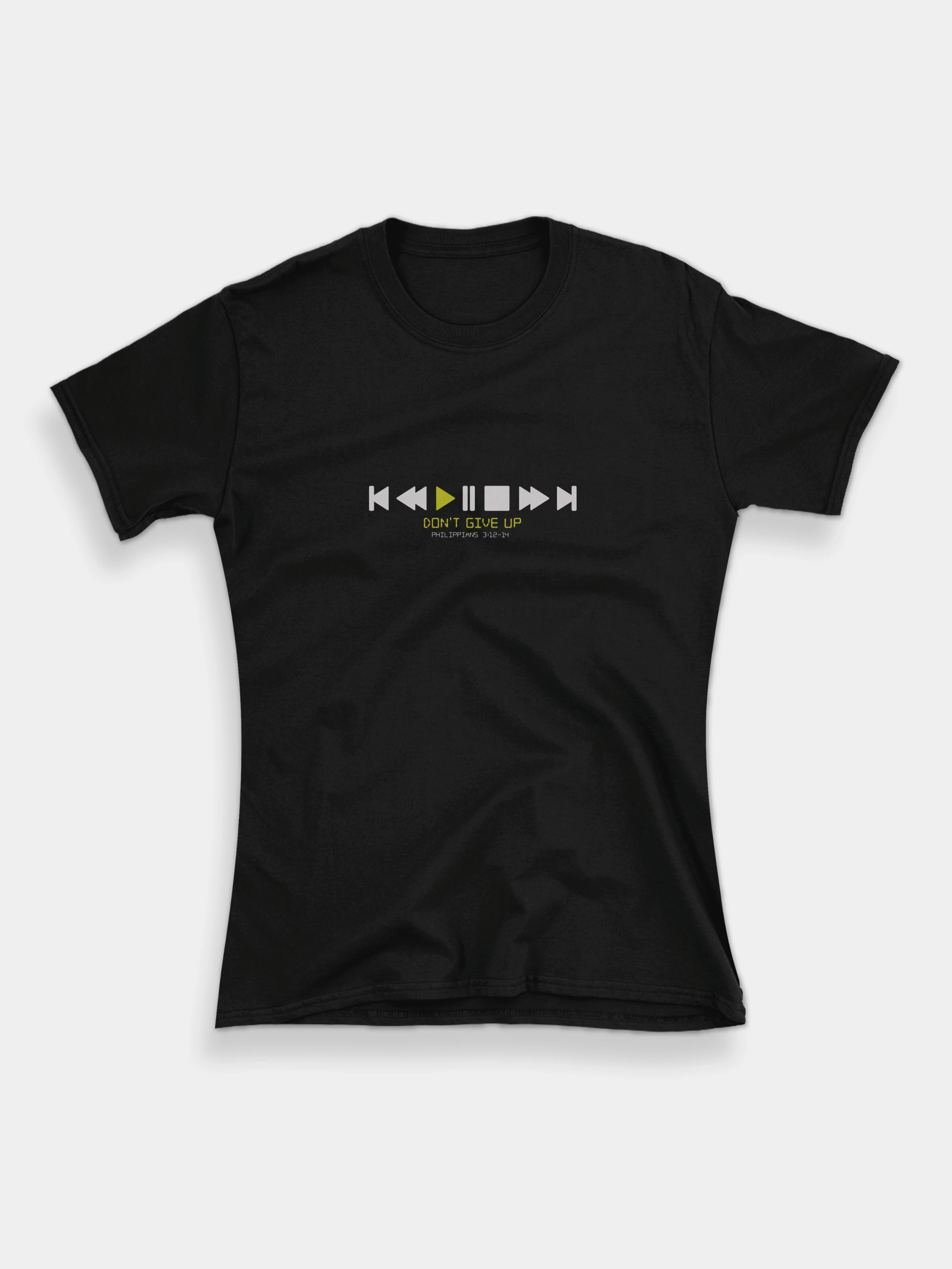 Felirat: „Don’t give up. Philippians 3:12-14”.