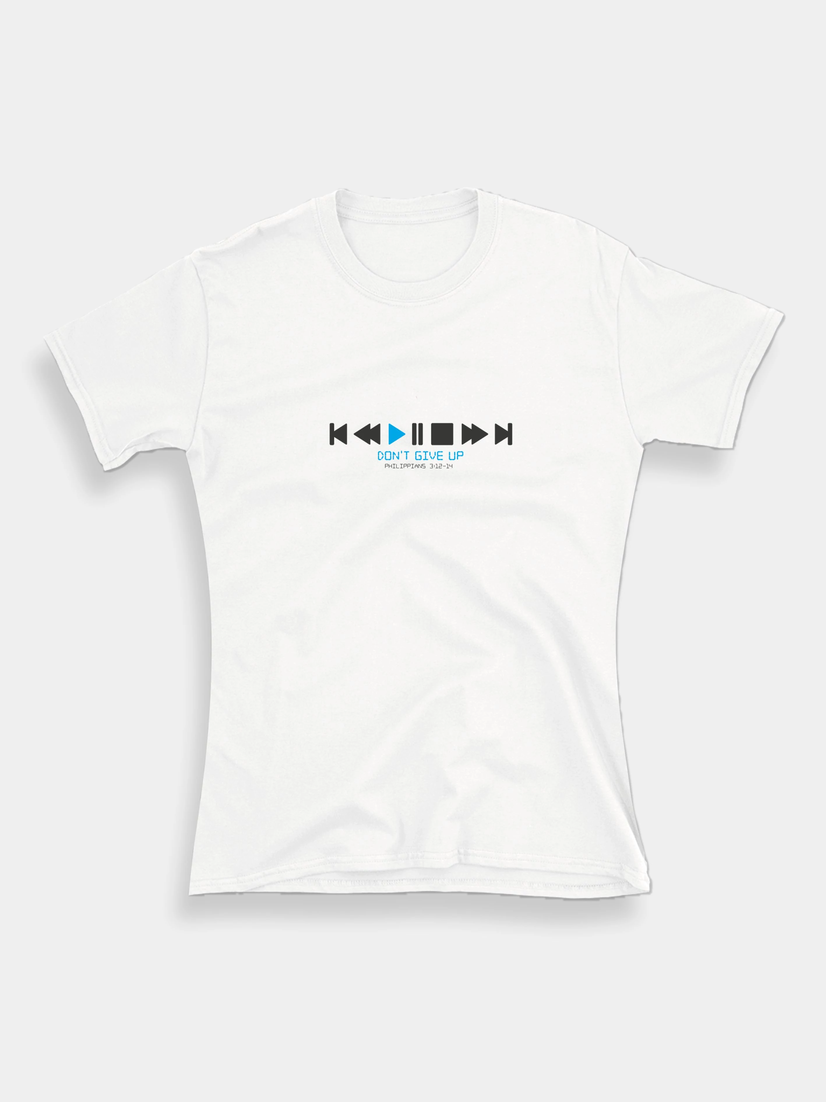 Felirat: „Don’t give up. Philippians 3:12-14”.