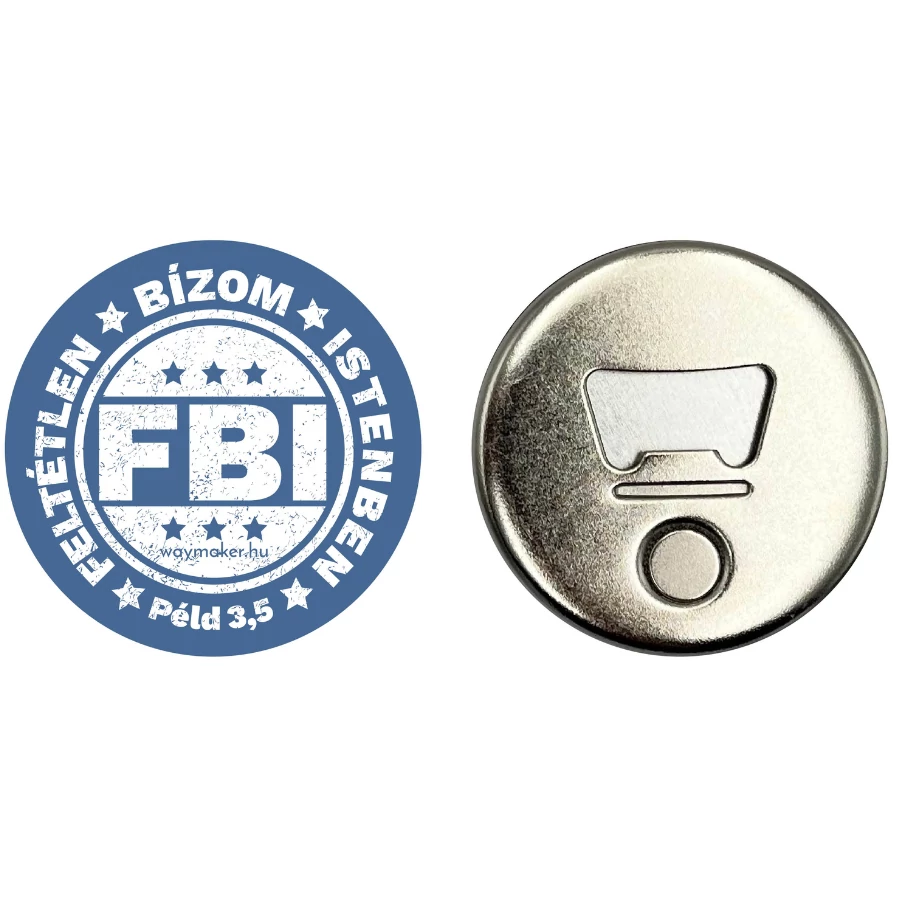 Felirat: „FBI – Feltétlen Bízom Istenben. Péld 3,5”.