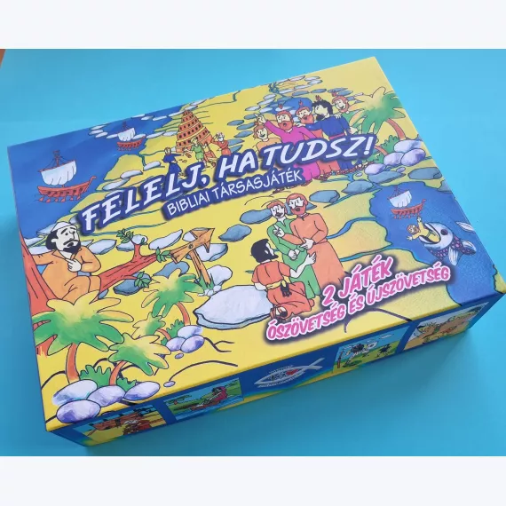 A doboz két játékot (1 ószövetségit és 1 újszövetségit) tartalmaz. A játékosok bejárhatják Izráel földjét, ill. újszövetségi képeket helyezhetnek el a játéktáblán. Az előrehaladásban segítségükre lehet a kérdéskártyákon feltett kérdések helyes megválaszolása. A kezdő játékosok is széleskörű bibliaismeretre tehetnek szert a játék folyamán. A játék doboz tartalma: 1db ószövetségi játéktábla + 1db újszövetségi játéktábla. 16db színes kártya, 128db kérdéskártya - felelettel. Játékleírás, 6db játékbábú, 1db dobókocka.