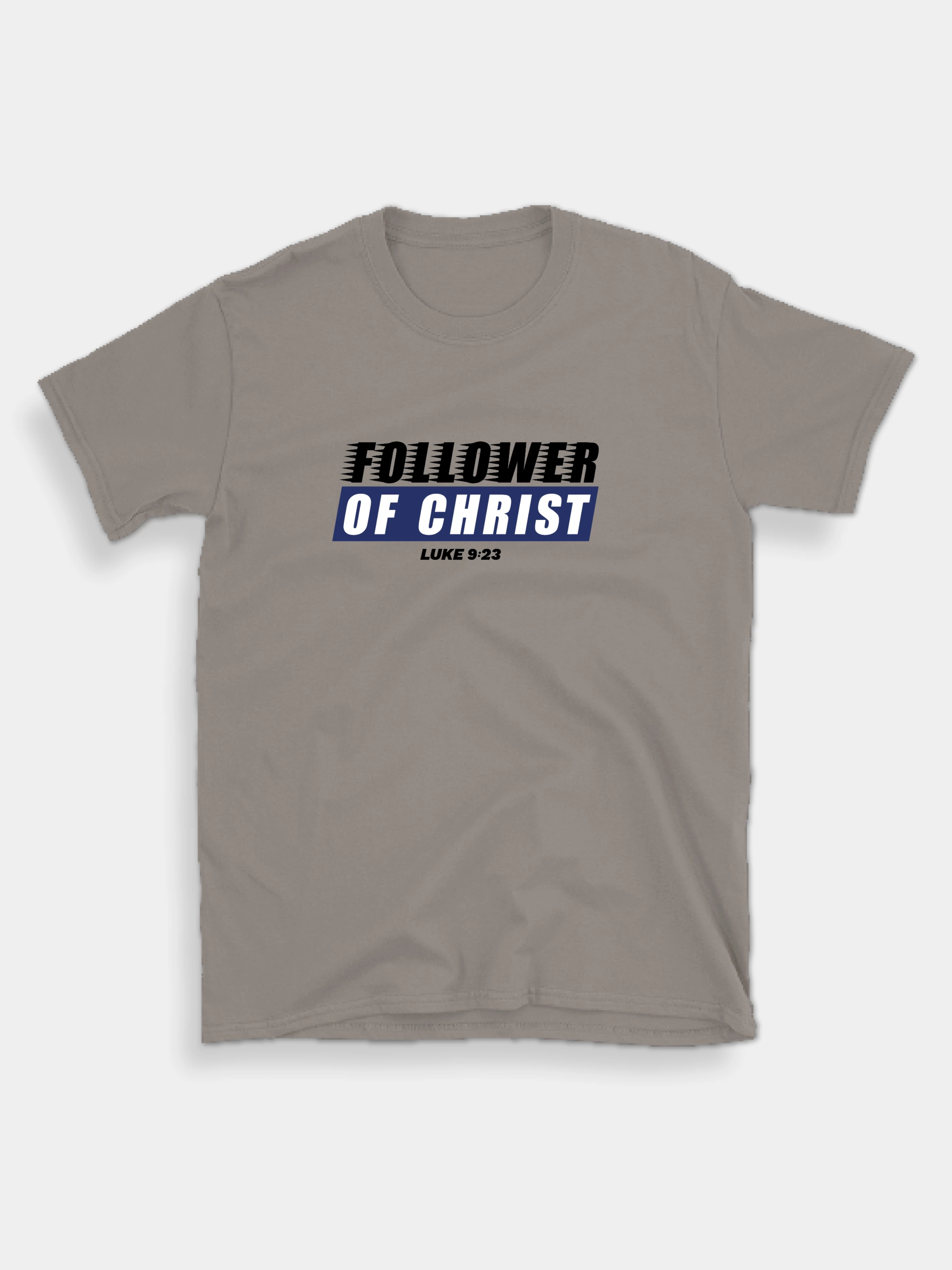 Felirat: „Follower of Christ – Luke 9:23”.