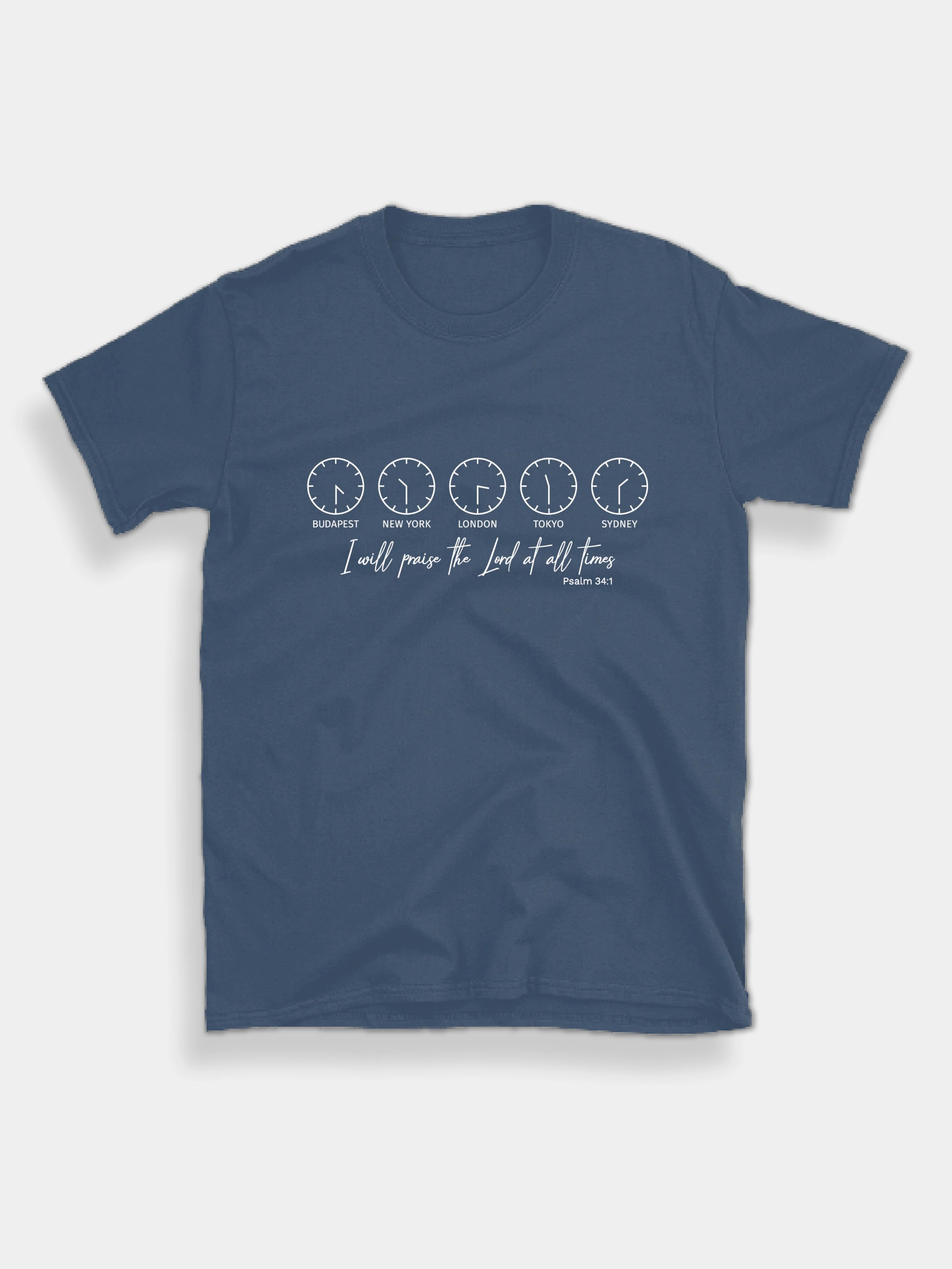 Felirat: „I Will Praise The Lord At All Times – Psalm 34:1”.