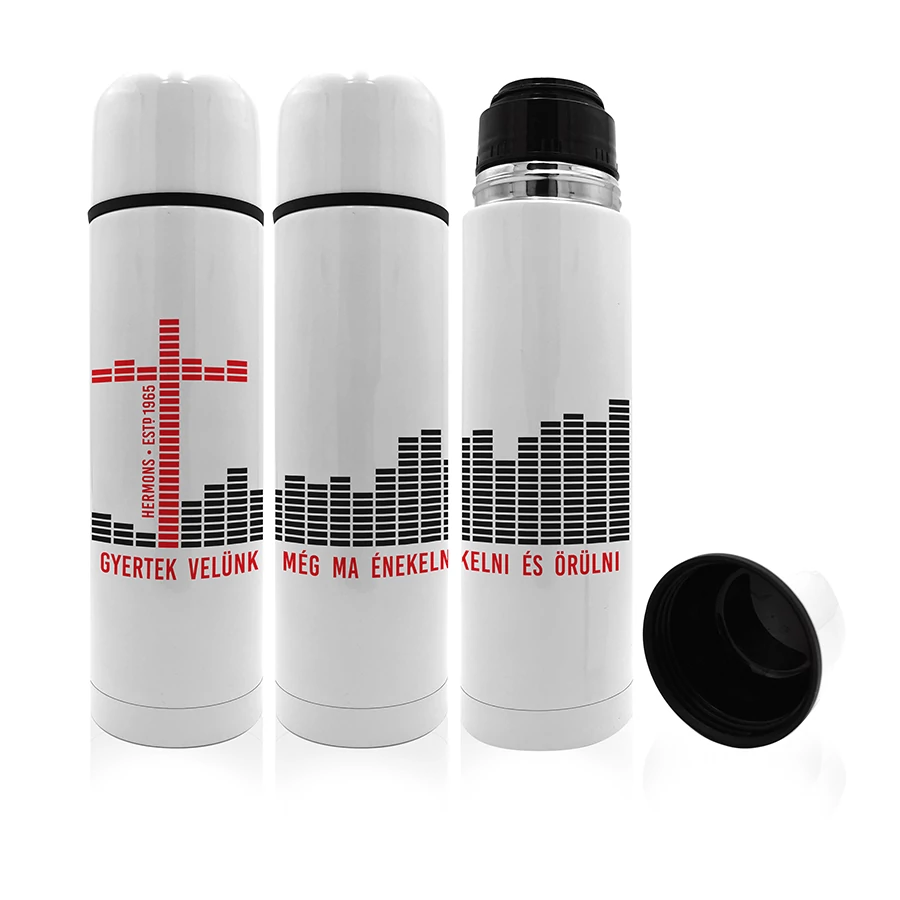 1 db rozsdamentes acél termosz Hermons-énekidézettel.