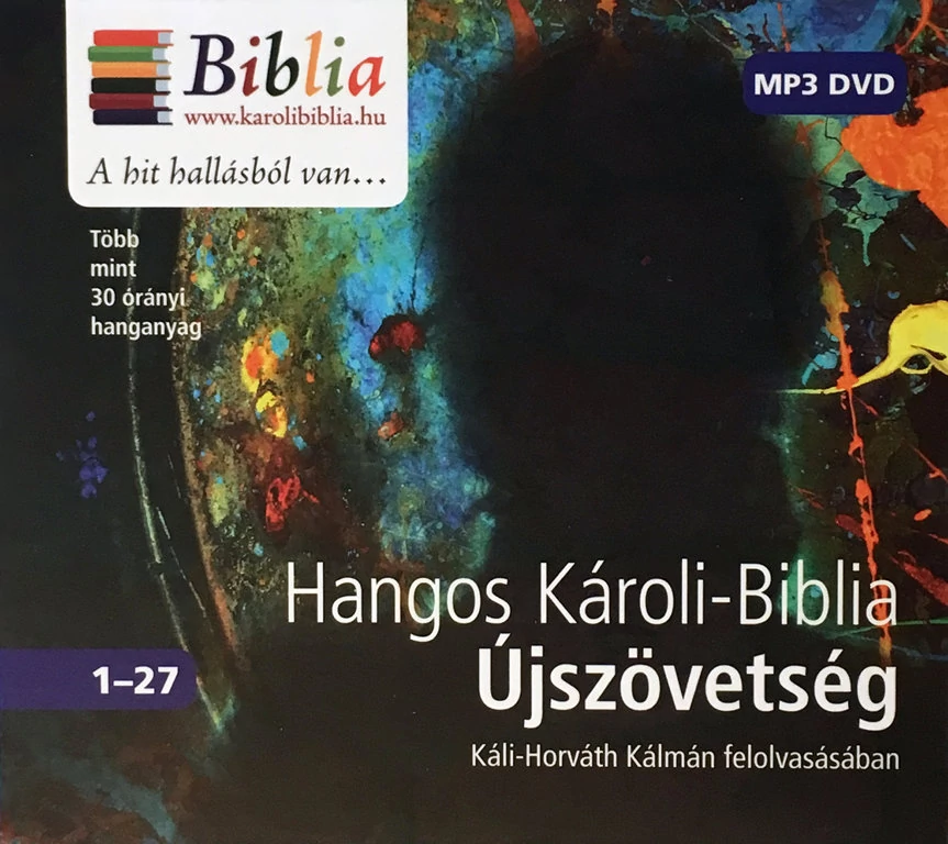 Az újonnan revideált Károli-Bibliát folyamatosan jelentetjük meg hangoskönyvsorozatban is, a legtöbbek által a Duna TV egykori bemondójaként ismert Káli-Horváth Kálmán értő felolvasásában. Ez a DVD a teljes Újszövetséget mp3 formátumban tartalmazza.