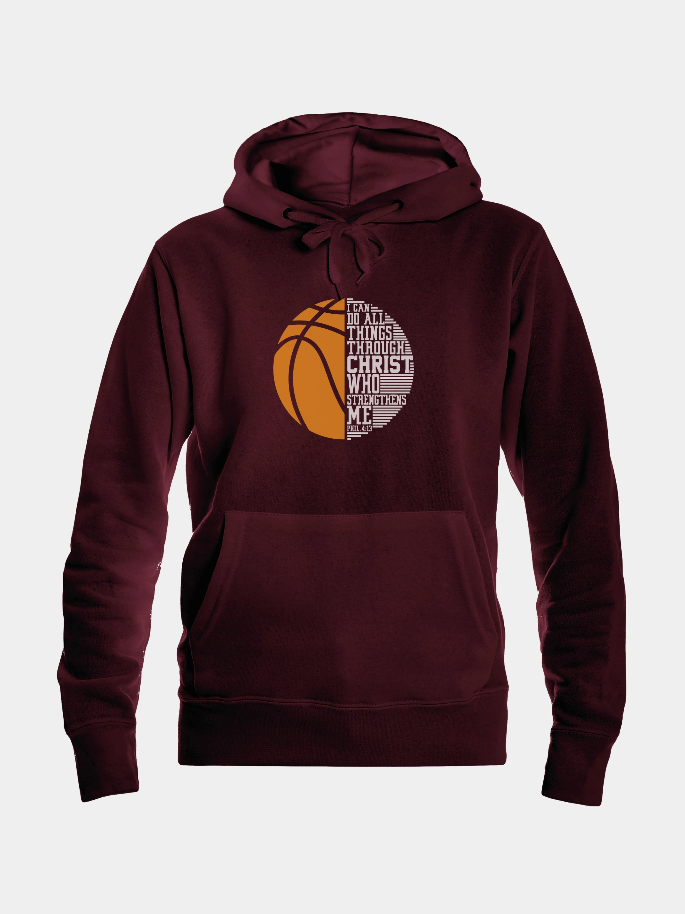 Női kapucnis pulóver kenguruzsebbel, angol felirattal, kosárlabdamintával.