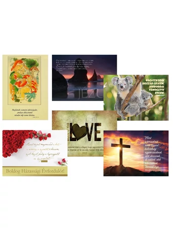 30 db / csomag. 6 féle képeslap, egyenként 5-5 db.