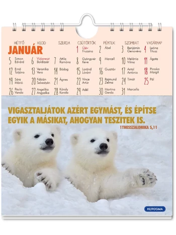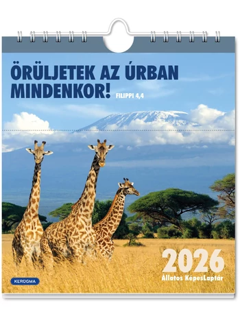 2026 Falinaptár – fekvő képeslapos, spirál, állatos – Örüljetek az Úrban mindenkor