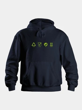 Kapucnis pulóver kenguruzsebbel, csomagolásikon-mintával, mindegyikhez 1-1 igehellyel. Felirat: „Jn 3,16 Jn 6,48 Jn 3,7 Jn 11,25”. Fazon: uniszex. 80% pamut, 20% poliészter.