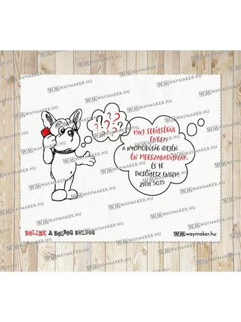 Bolldy, a boldog buldog – törlőkendő telefonhoz, laptophoz, tablethez, szemüveghez. Felirat: „Hívj segítségül engem a nyomorúság idején: én megszabadítalak, és te dicsőítesz engem. – Zsolt 50,15”. Méret: kb. 180 x 150 mm. |