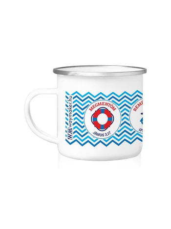 Zománcos bögre vidám matrózmintával, „Megmentőm (János 3,17), reménységem (1Péter 1,3), Uram (Filippi 2,11), Istenem (János 20,28)” felirattal. Jó emlékeztető lehet ez a bögre akár neked, akár barátaidnak. E termék megvásárlásával 200 forinttal támogatod a Bibliák készítését. |