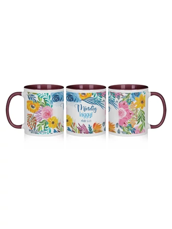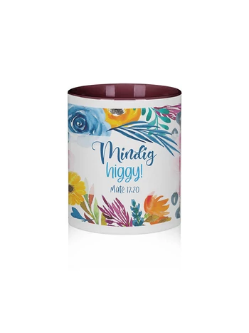 Kerámiabögre „Mindig higgy!” Máté 17,20 felirattal, bordó füllel és belsővel.