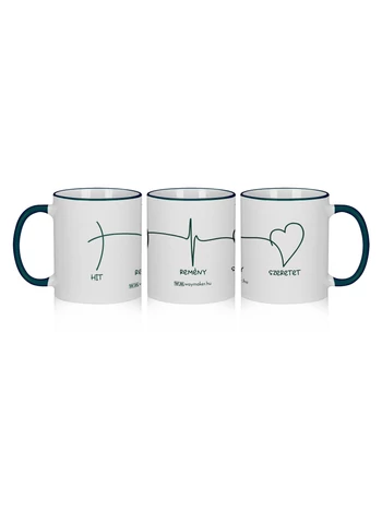 Kerámiabögre „Hit, remény, szeretet” felirattal, zöld füllel.