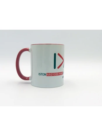 Kerámiabögre piros füllel és belsővel. Felirat: I>^V – „Isten nagyobb, mint a magasságok és a mélységek” (Róm 8,28–39) Űrtartalom: 300 ml. E termék megvásárlásával 200 forinttal támogatod a Bibliák készítését. |