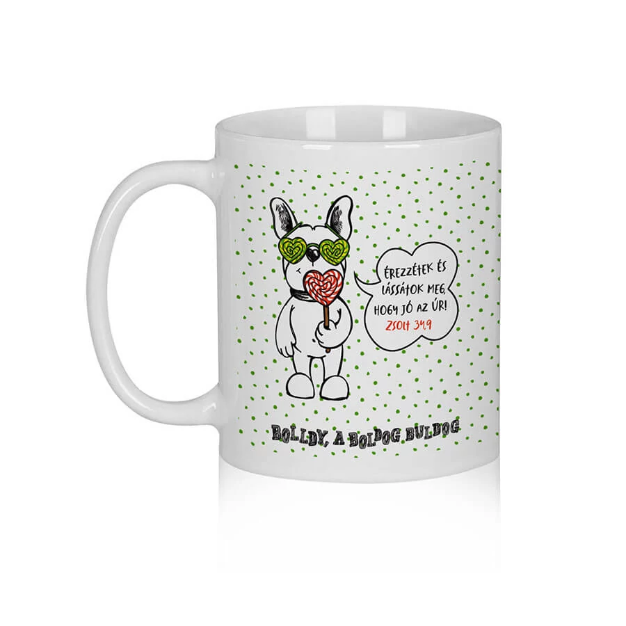 Bolldy, a boldog buldog – kerámiabögre, fehér.