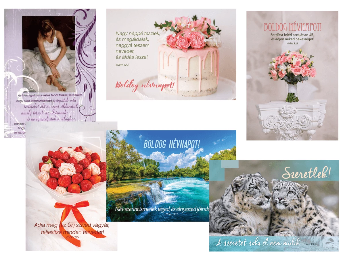 30 db / csomag. 6 féle képeslap, egyenként 5-5 db.