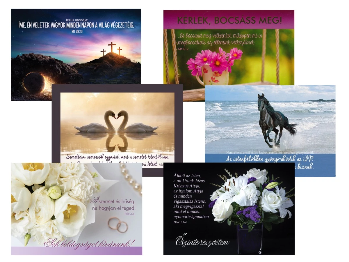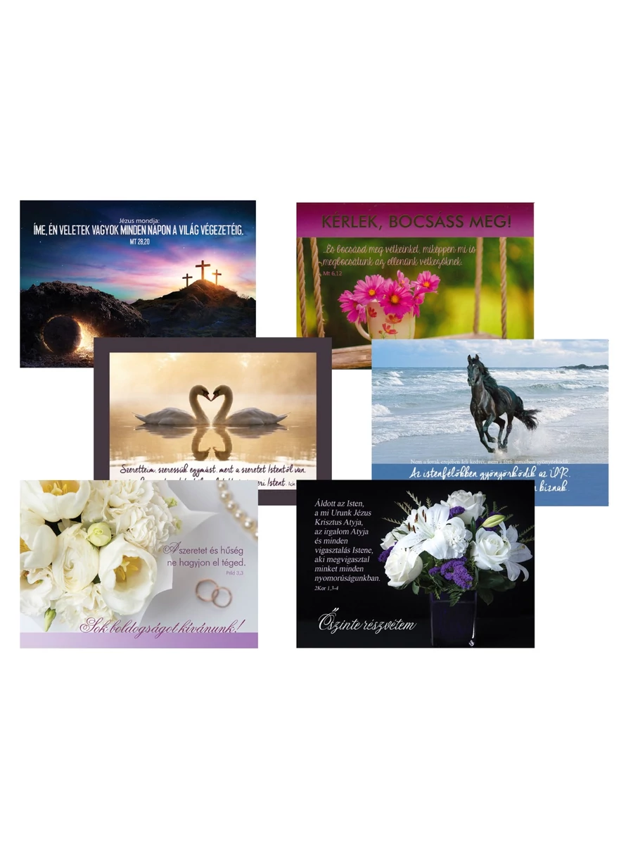 30 db / csomag. 6 féle képeslap, egyenként 5-5 db.