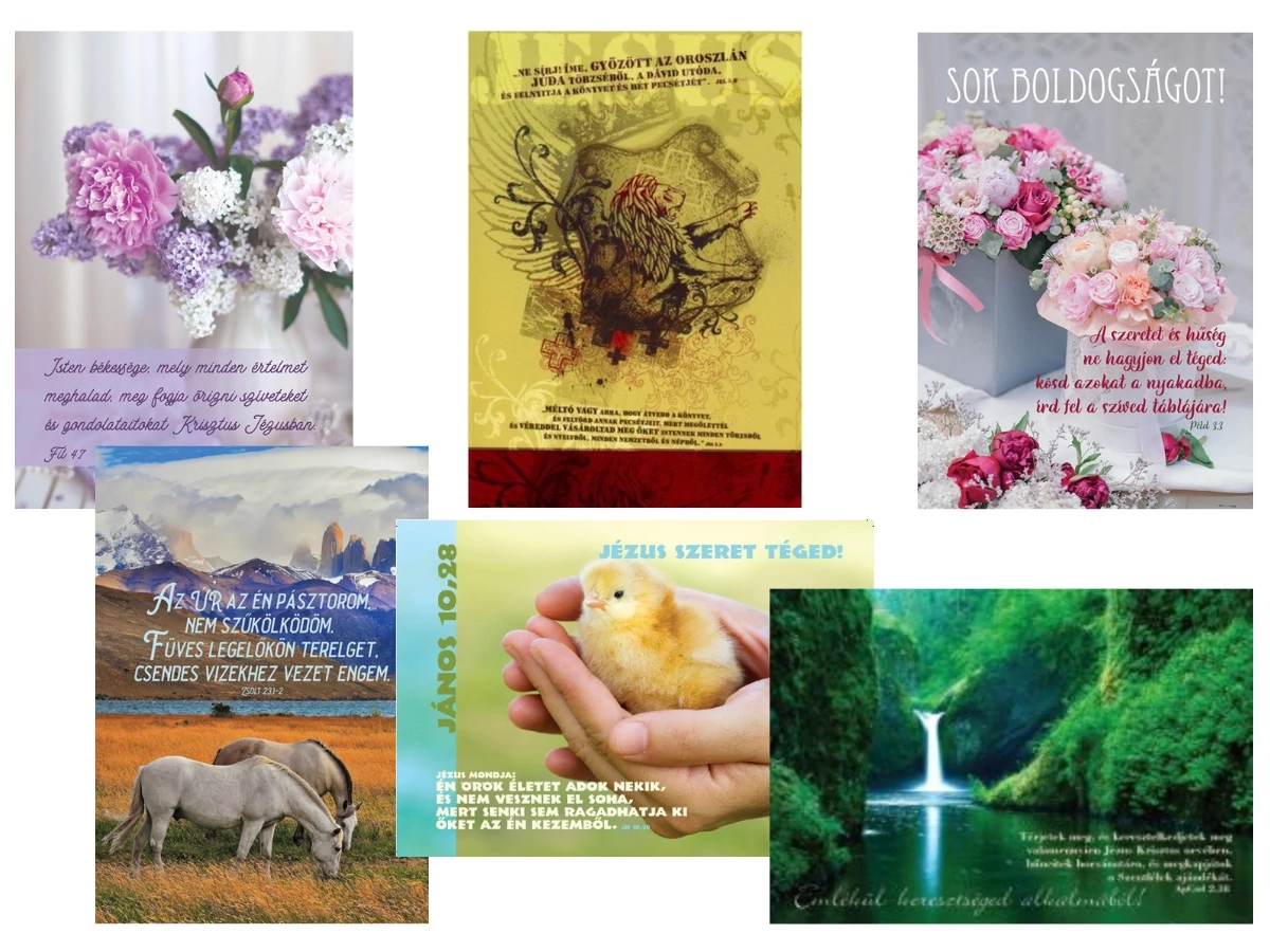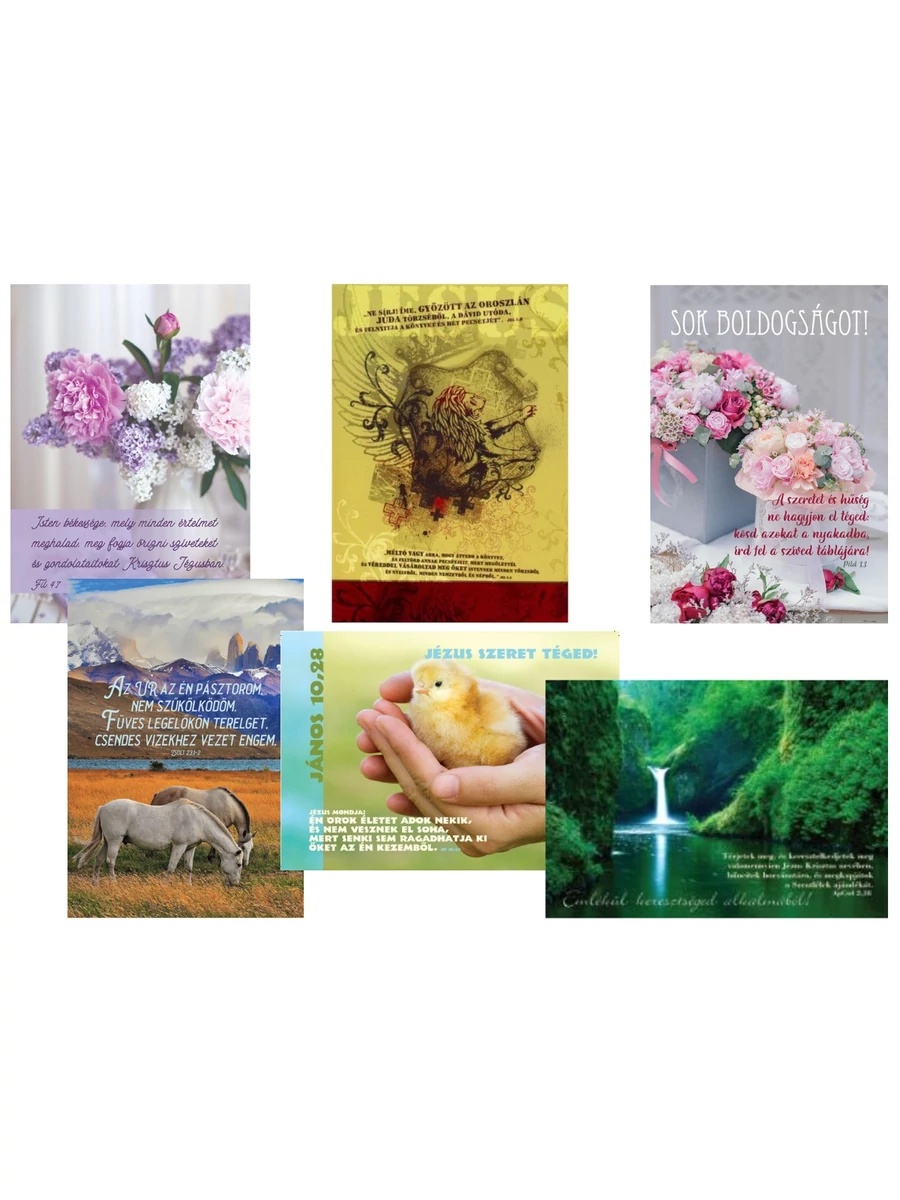 30 db / csomag. 6 féle képeslap, egyenként 5-5 db.