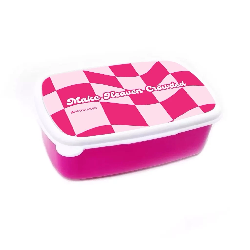 Műanyag uzsonnás doboz, angol felirattal.