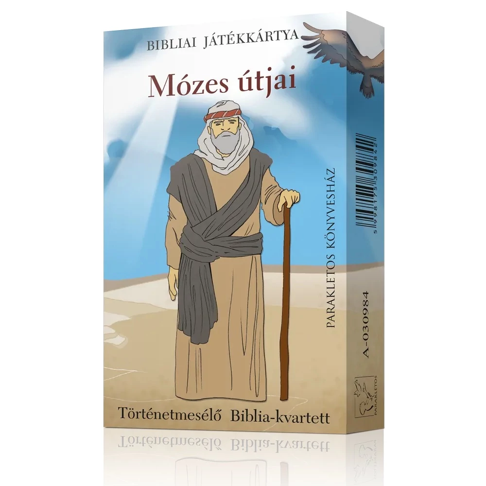 Történetmesélő kártyajátékunk Mózes életének fontos eseményeit mutatja be a játékosoknak. Megismerkedhetnek a történetek főbb szereplőivel, élettereivel, élőlényeivel és tárgyaival is. A csomagban 32 történetmesélő kártya található, kiegészítve 4 különleges „Veletek vagyok” lappal, amik jokerként használhatók. A kártyák két szempont szerint is gyűjthetők. Így nemcsak Mózes életét, hanem a történet szereplőit, élőlényeit, tárgyait is megismerhetjük. A kártyákon lévő rövid, könnyen érthető szövegek segítségével már a legkisebbek is gyorsan megismerkedhetnek az Egyiptomból való szabadulás és a pusztai vándorlás történetével.