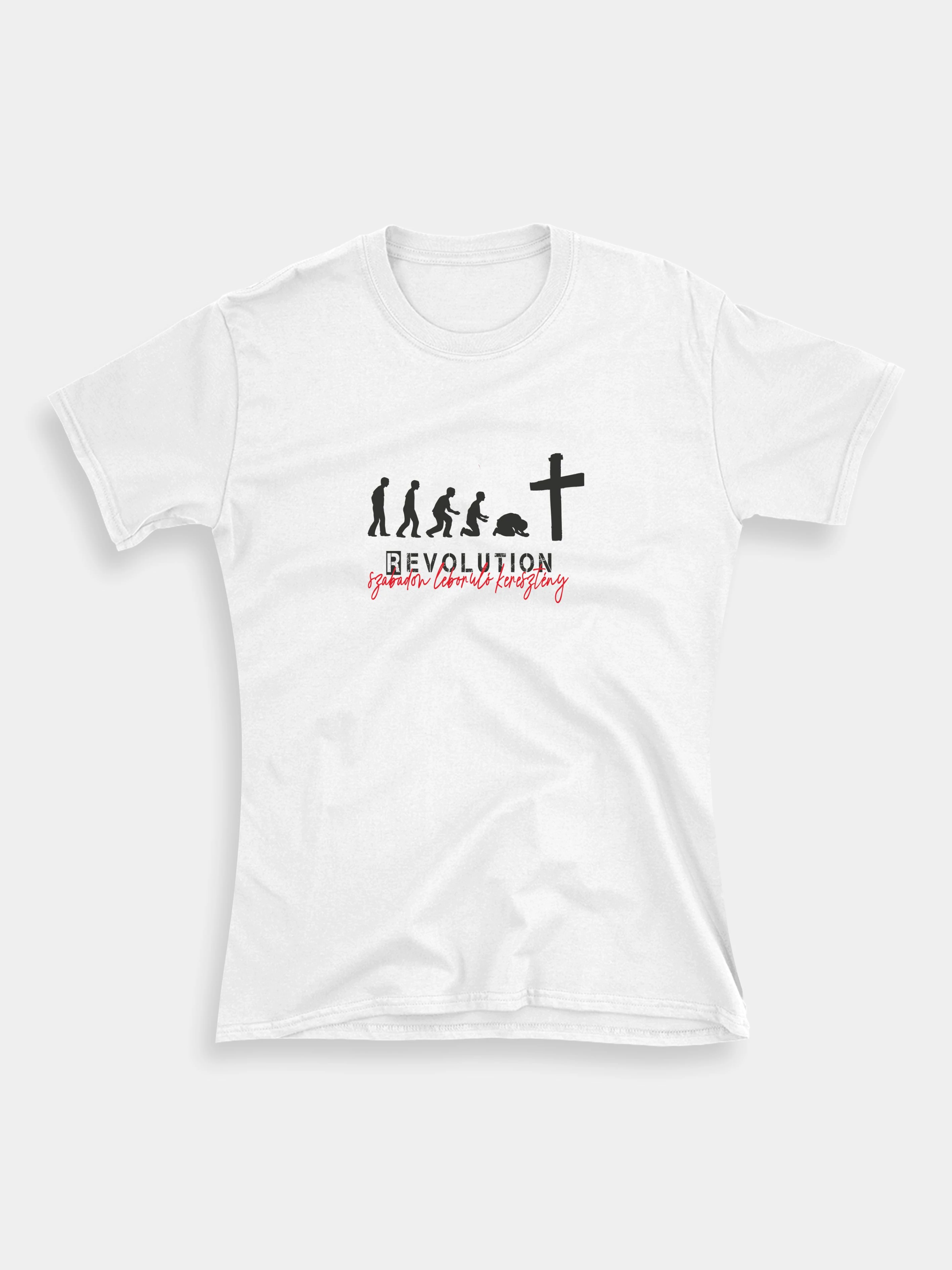 Felirat: „REVOLUTION – szabadon leboruló keresztény”.