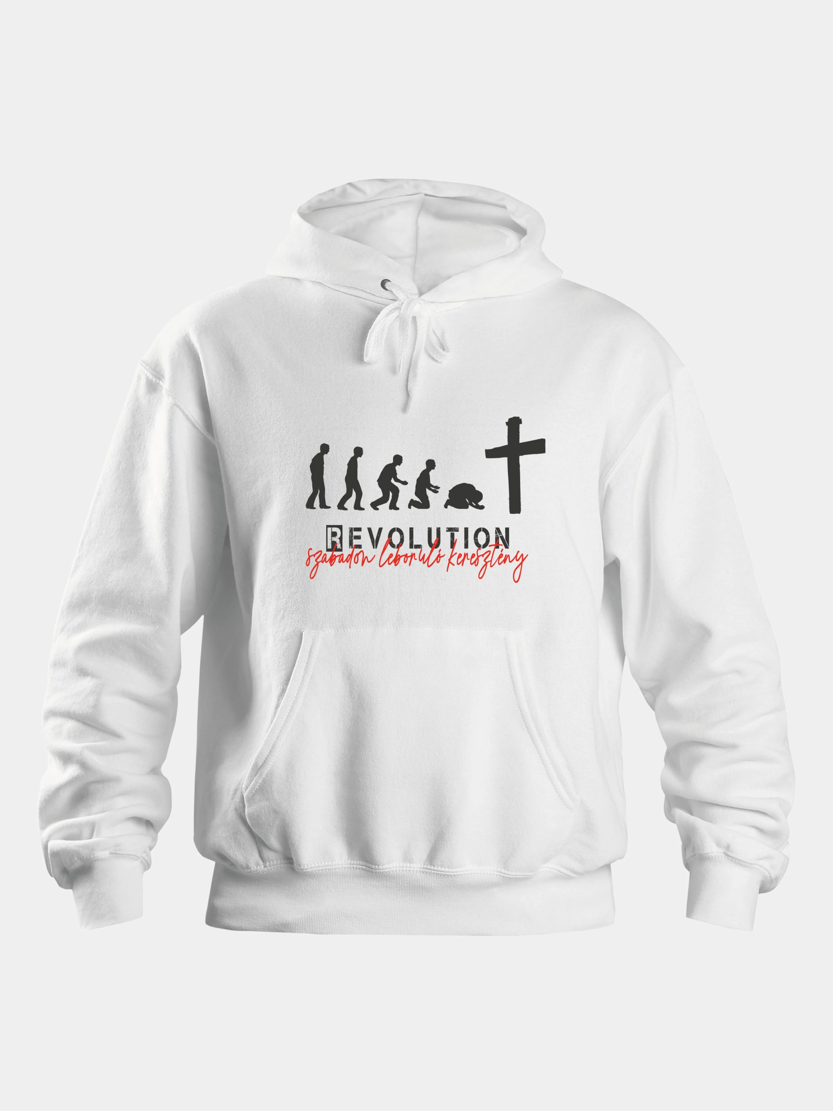 Felirat: „REVOLUTION – szabadon leboruló keresztény”.