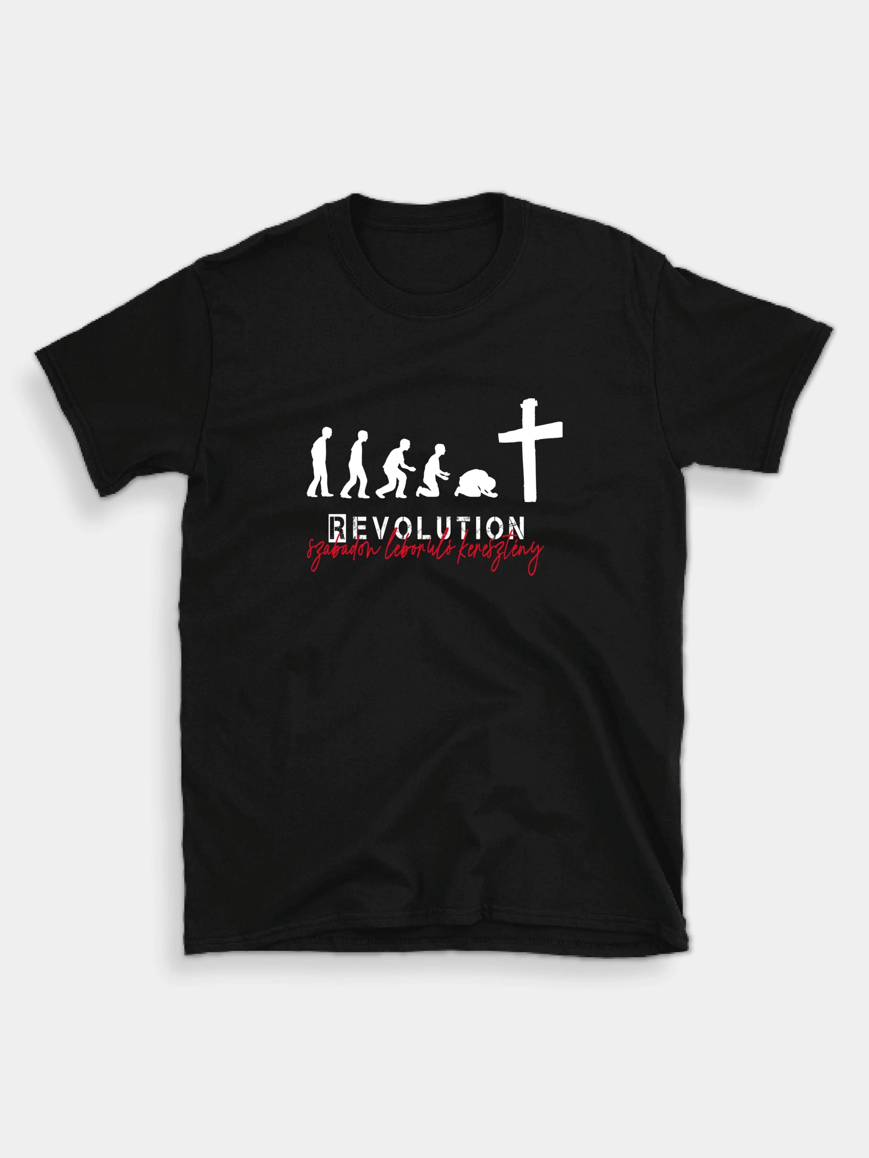 Felirat: „REVOLUTION – szabadon leboruló keresztény”.