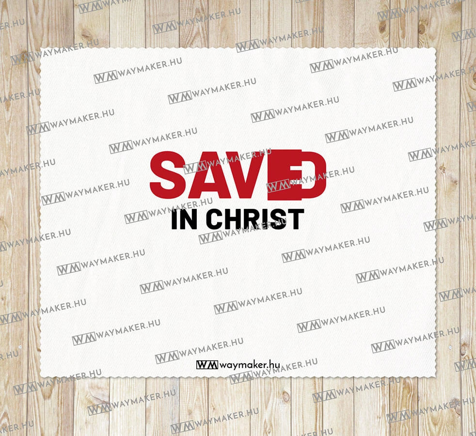 Felirat: „Saved in Christ”.