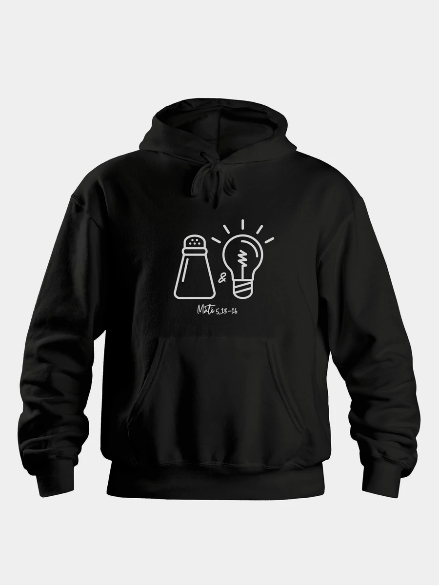 Kapucnis pulóver kenguruzsebbel, magyar felirattal, sószóró- és izzómintával.
