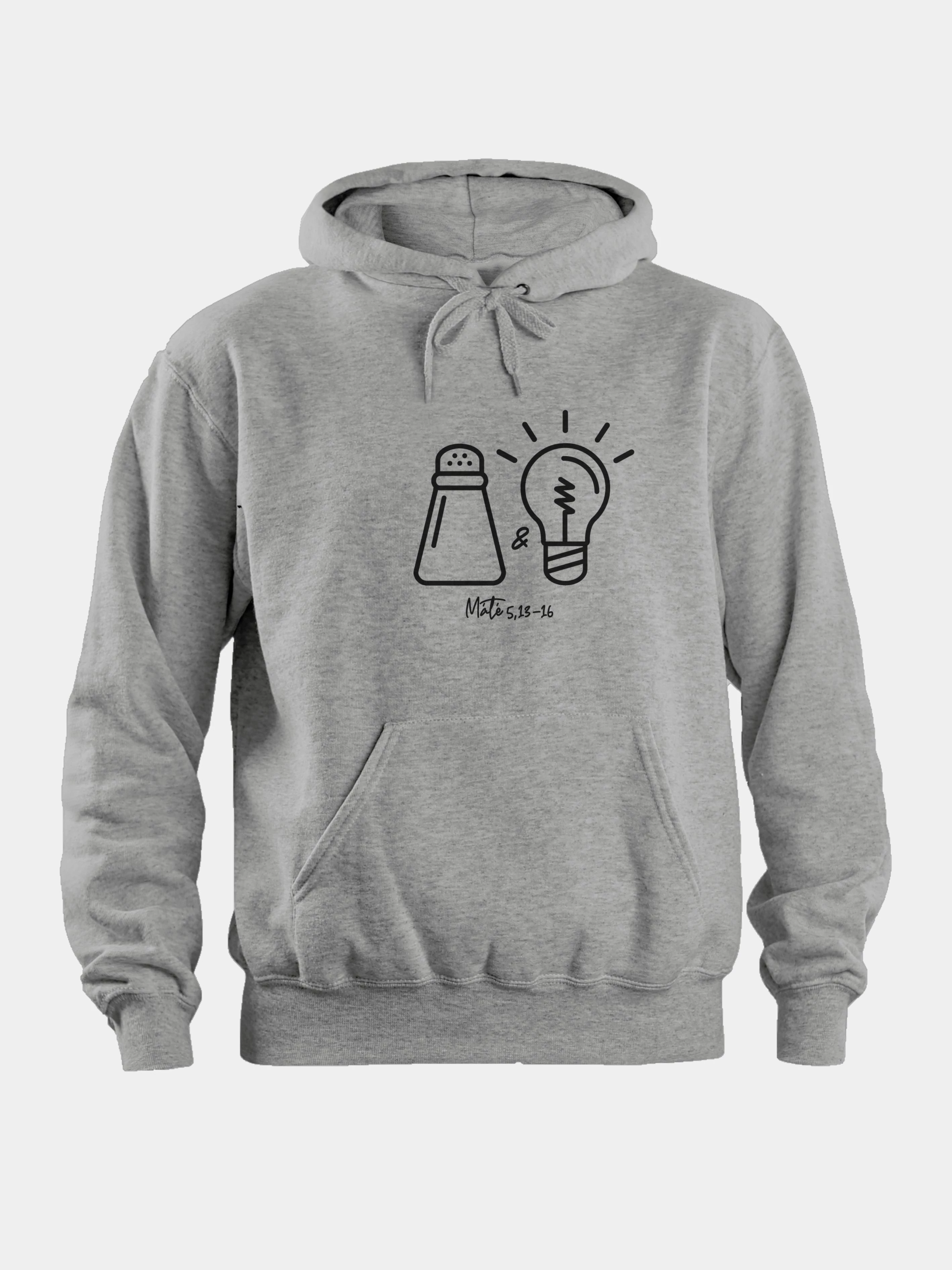 Kapucnis pulóver kenguruzsebbel, magyar felirattal, sószóró- és izzómintával.