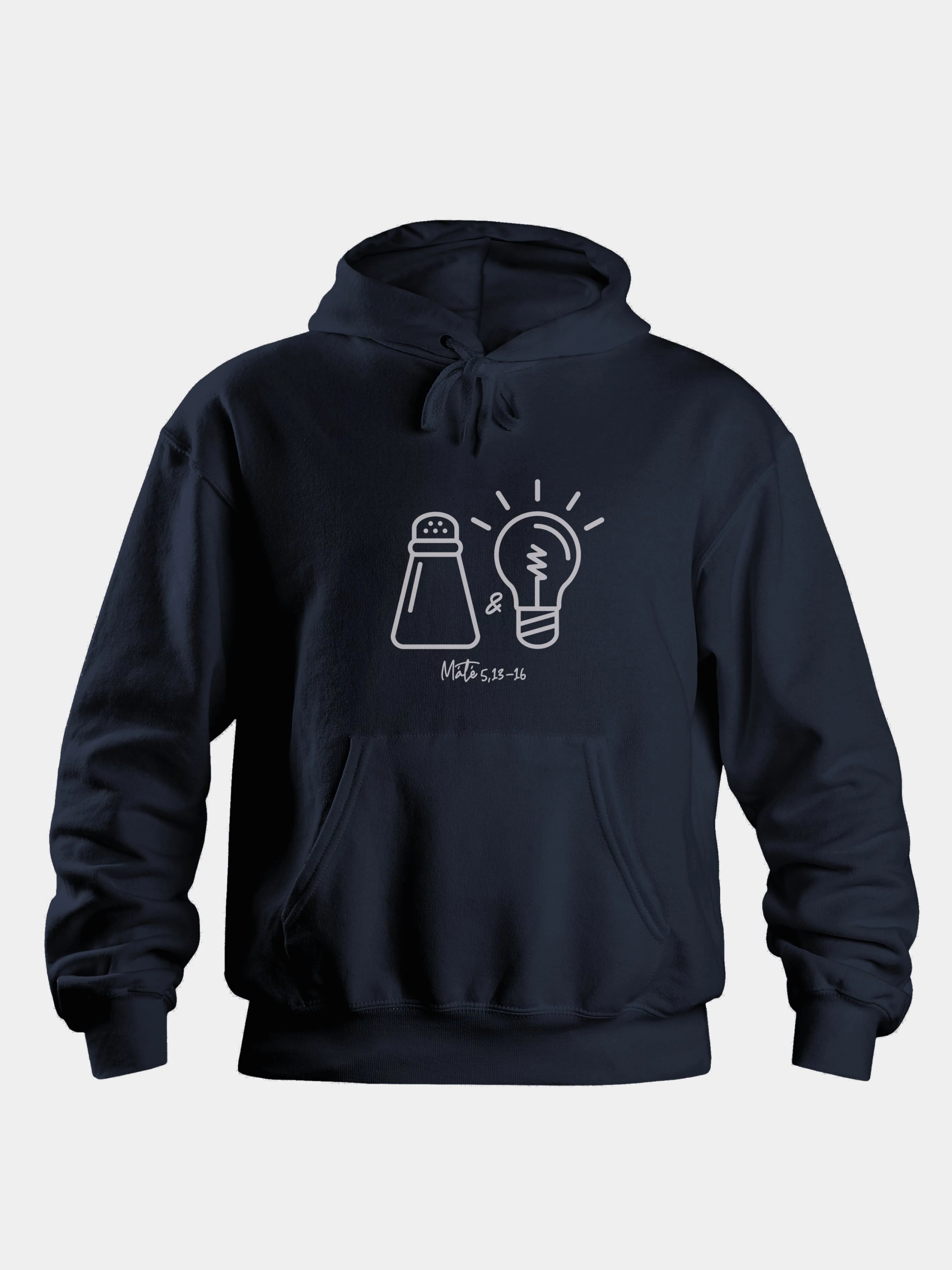 Kapucnis pulóver kenguruzsebbel, magyar felirattal, sószóró- és izzómintával.