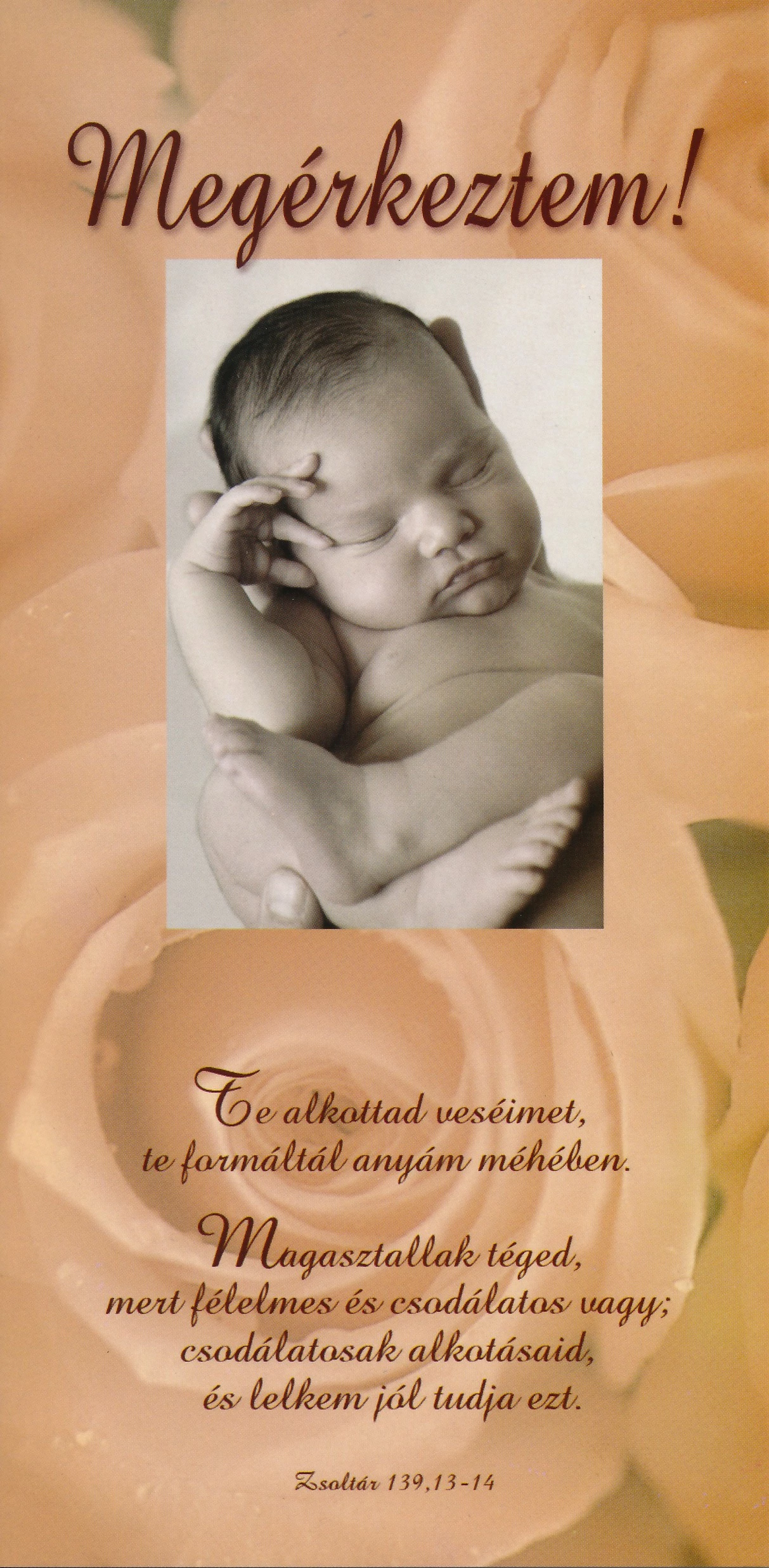 Belső oldalon szereplő Ige: Csontjaim nem voltak rejtve előtted, amikor titkon formálódtam, mintha a föld mélyén képződtem volna. Alaktalan testemet már látták szemeid; könyvedben minden meg volt írva, a napok is, amelyeket nekem szántál, bár még egy sem volt meg belőlük. Zsoltár 139,15-16