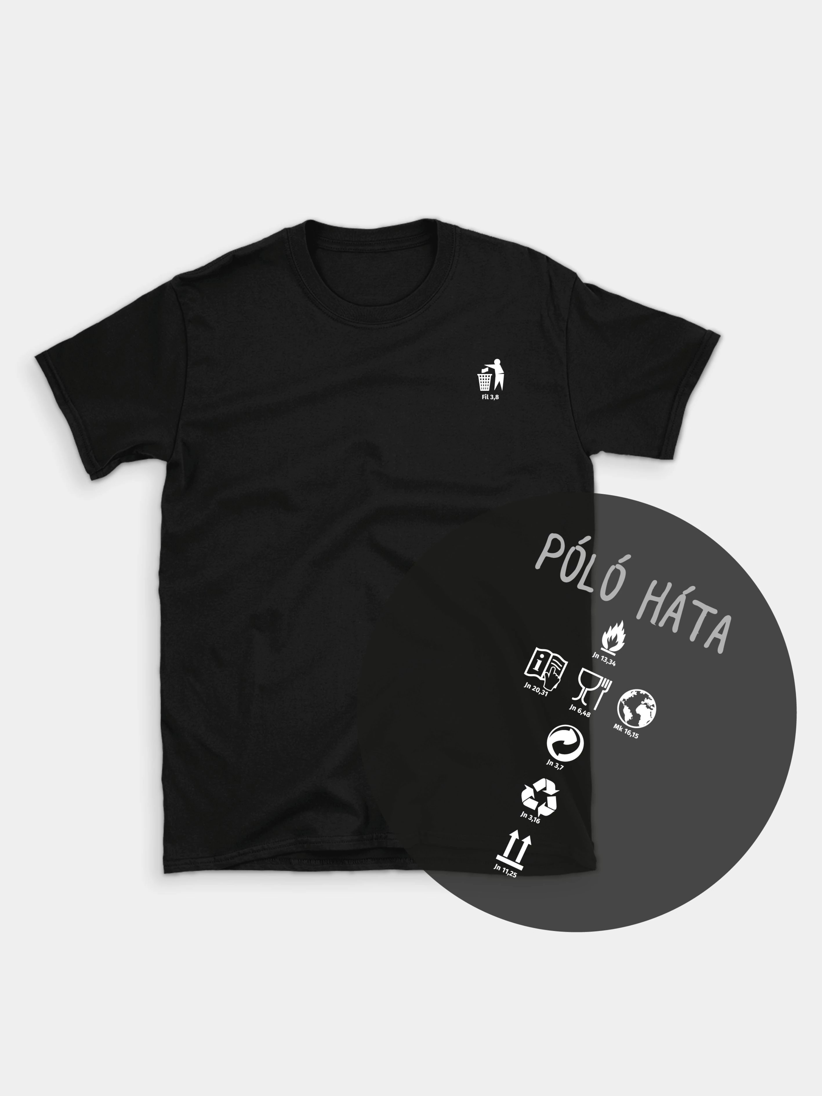 Uniszex póló elöl-hátul közismert ikonok mintájával, mindegyikhez 1-1 igehellyel